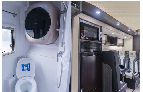主要配置方面,這款隆翠暢游C房車搭配1200W太陽能板,1200Ah鋰電池,240升凈水箱。新車采用了整車保溫設(shè)計,確保用戶在環(huán)境溫度極低的條件下,也能在房車中舒適度過。車身加厚,額頭處厚度可達(dá)70mm,擁有良好的隔熱效果,使得車內(nèi)車內(nèi)制冷制熱效果更好。新車還融入了熱回收系統(tǒng)設(shè)計,在高海拔低氣溫環(huán)境下,智能溫控系統(tǒng)開啟自動加熱模式,維持鋰電池的正常運行,這是這款車在用戶體驗上的最大進(jìn)步。(圖/來源于隆翠房車官方微信公眾平臺 文/21rv 王海龍)